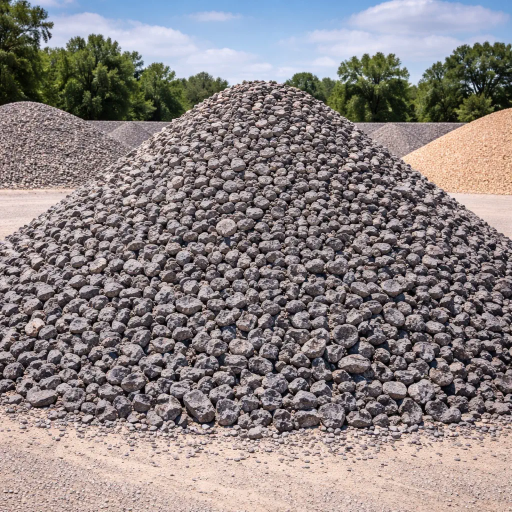 Crushed granite #57 stone (1/2" to 1.5") — harder and more durable than limestone. Used for drainage, decorative applications, and premium construction.