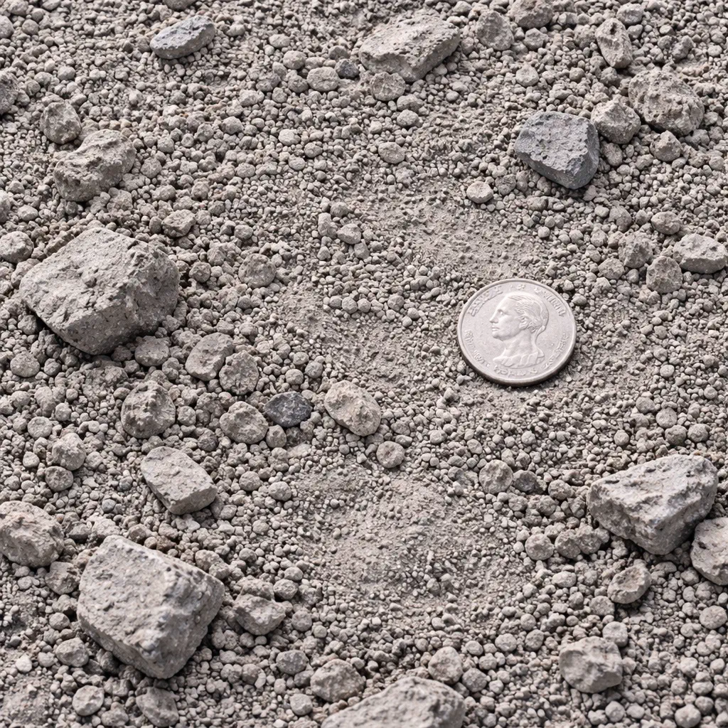 | Gradation | 0 to 2-3". Well-graded mix of coarse and fine recycled concrete. |